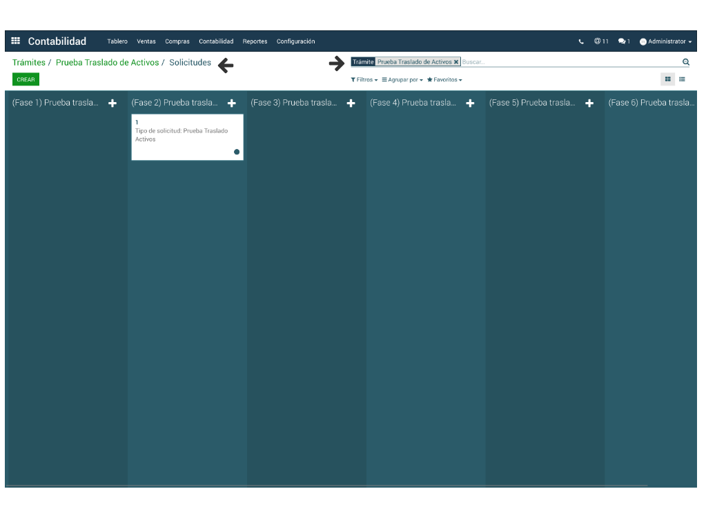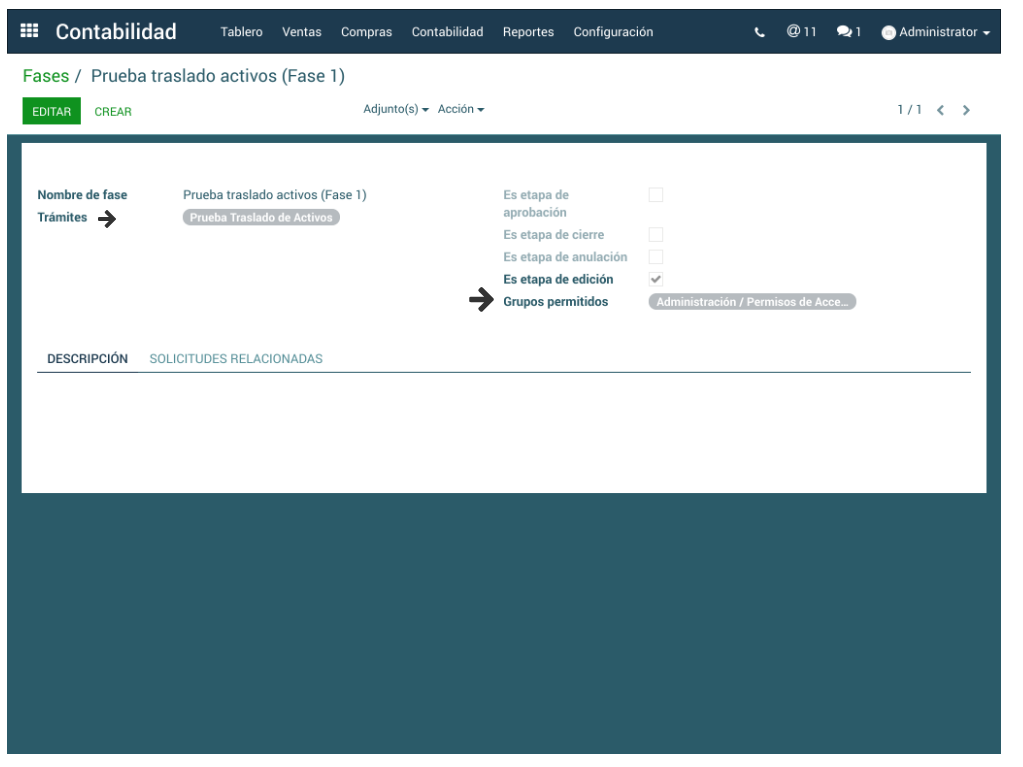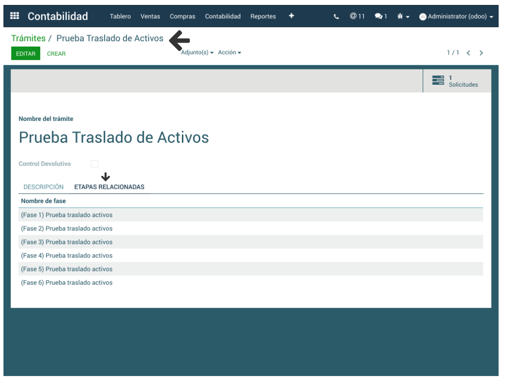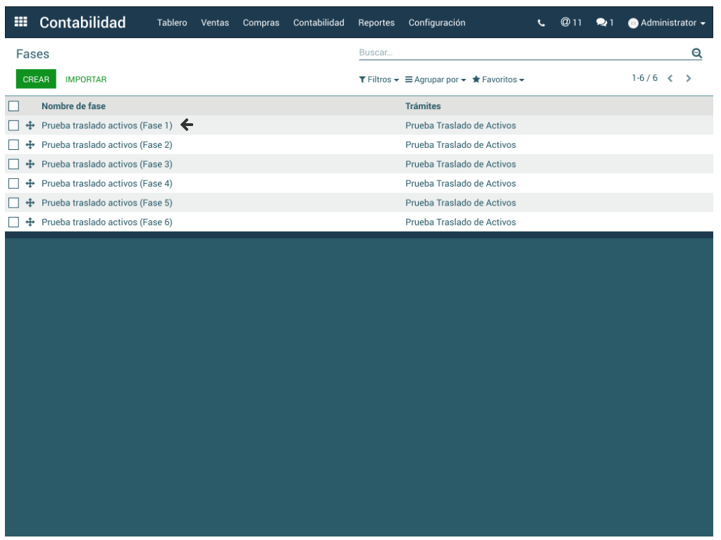 > Contabilidad > Configuración > Trámite de Traslado de Activos > Fases