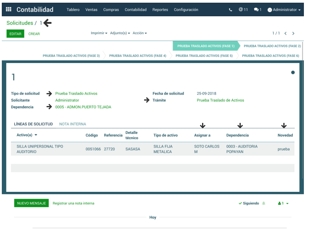 > Contabilidad > Configuración > Trámite de Traslado de Activos > Solicitudes