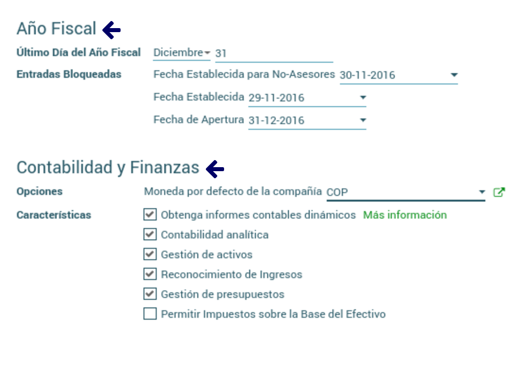 - Entradas Bloqueadas: Fecha establecida para No Asesores permite que solamente los usuarios con el rol Asesor pueden editar cuentas antes de y en esta fecha.