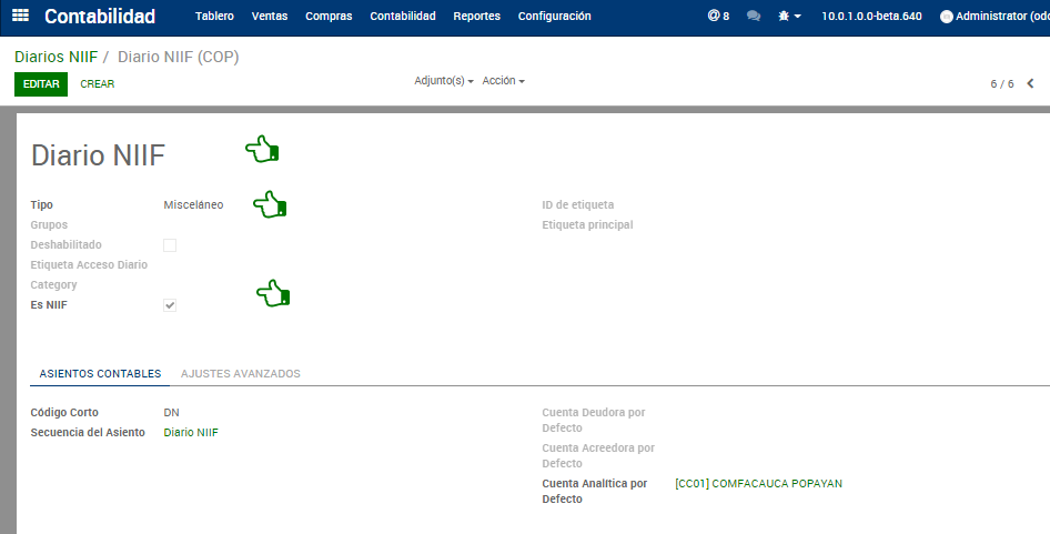 Ir a configuración > Diarios NIIF