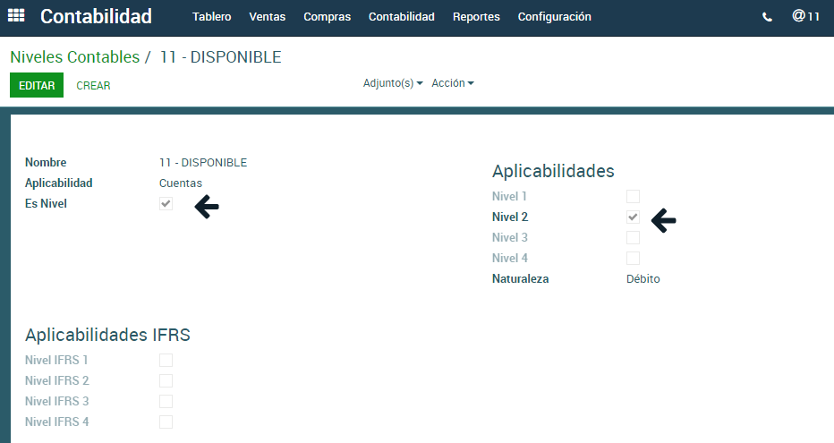 ir a configuracion > niveles contables > crear