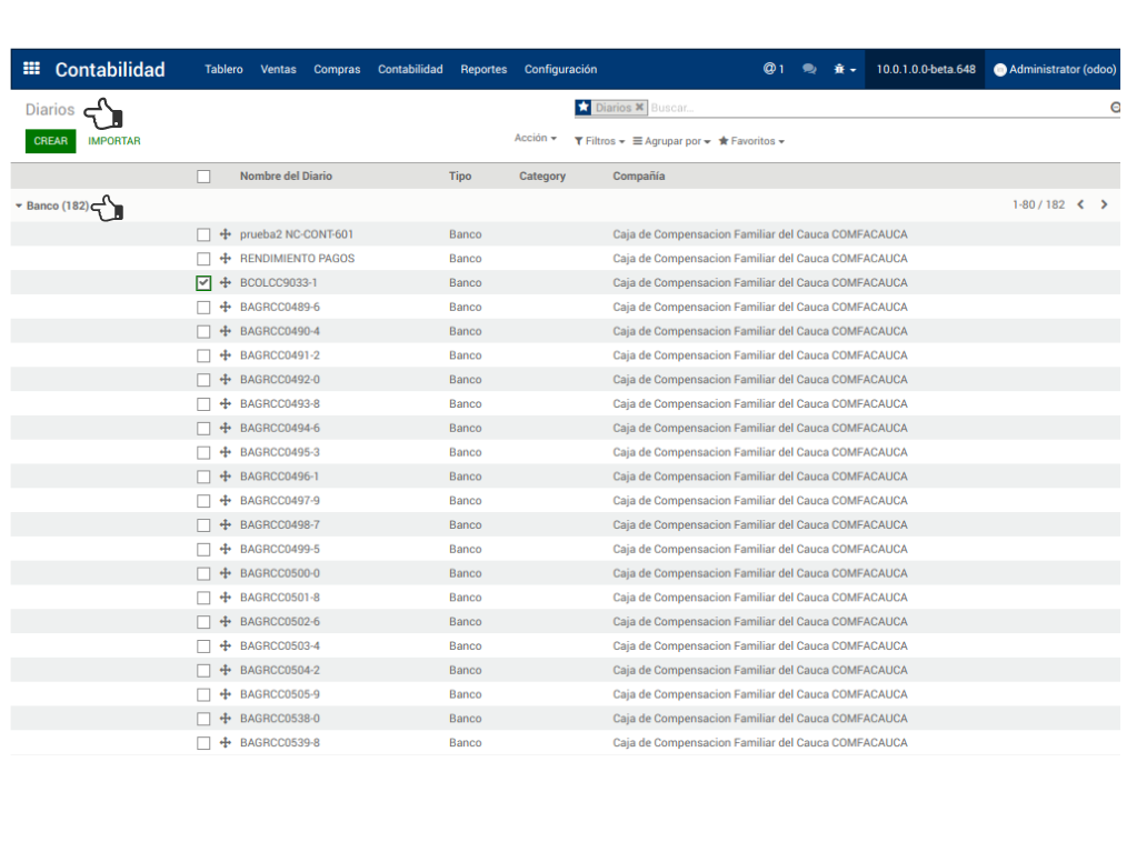 1. Se elige cualquiera de los diarios tipo banco y se da clic en el botón