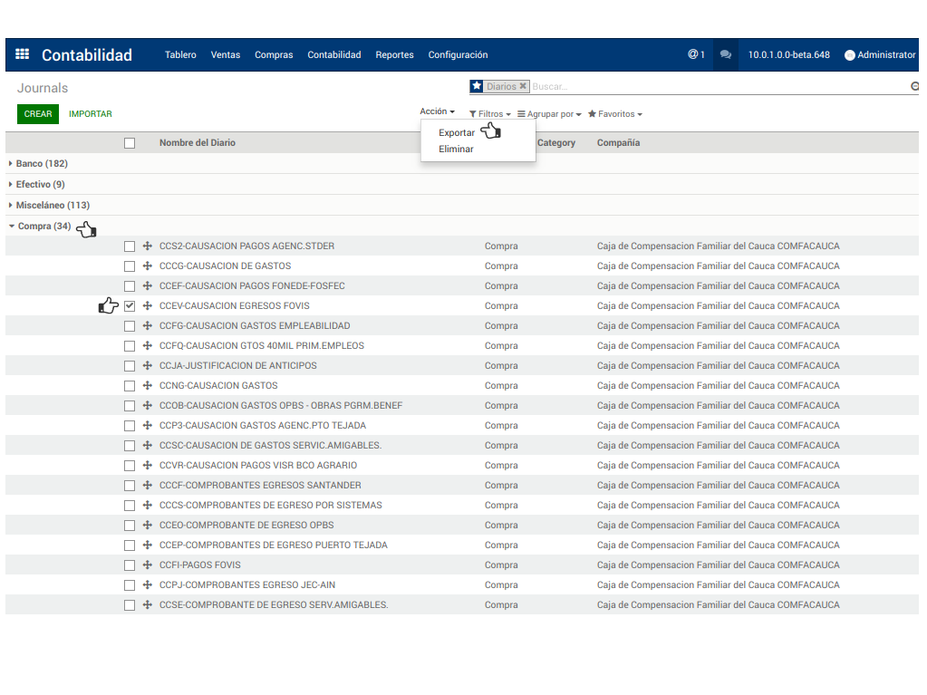 1. Se elige cualquiera de los diarios de compra y se da clic en el botón