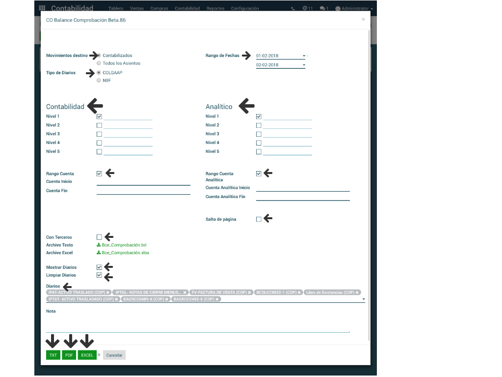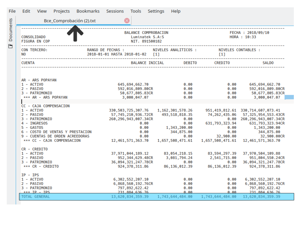 Balance de Comprobación en Formato TXT
