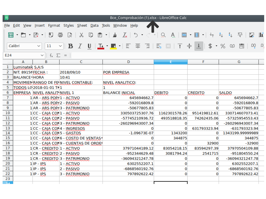 Balance de Comprobación en Formato Excel