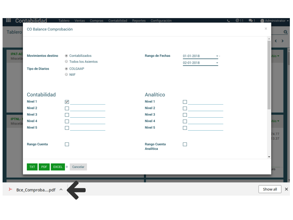 Contabilidad > Reportes > Balance de Comprobación