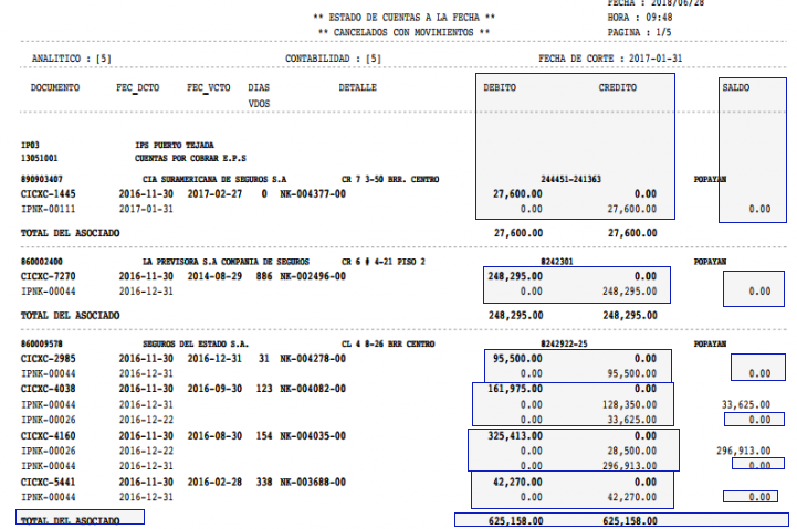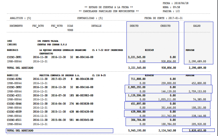 El reporte de Estado de Cuentas a la Fecha permite que a una fecha de corte específica se pueda conocer el estado de cuenta de todos los asociados o de un asociado en particular.