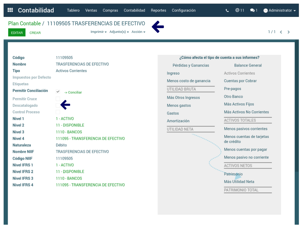 Y también que dicha cuenta no se encuentre descatalogada en el plan contable.