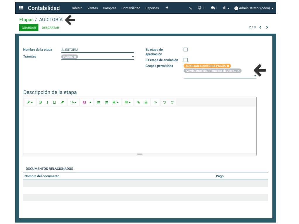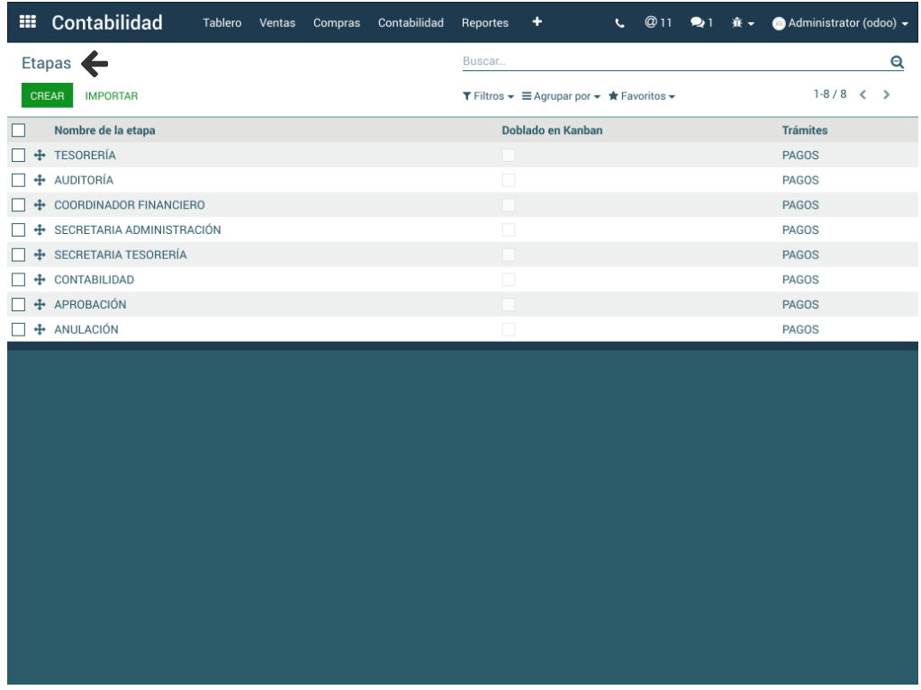 > Contabilidad > Configuración > Trámite de Pagos > Etapas