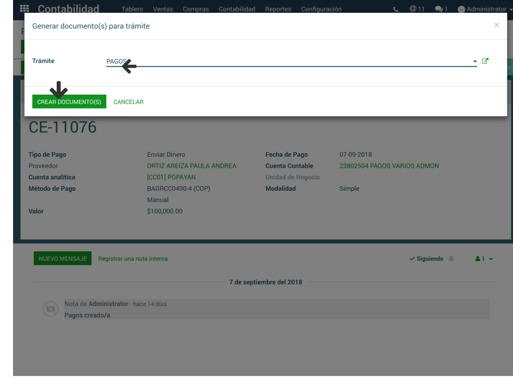 > Contabilidad > Configuración > Trámite de Pagos > Documentos > Crear