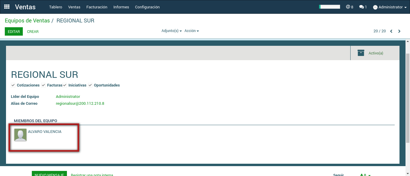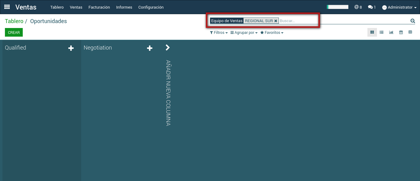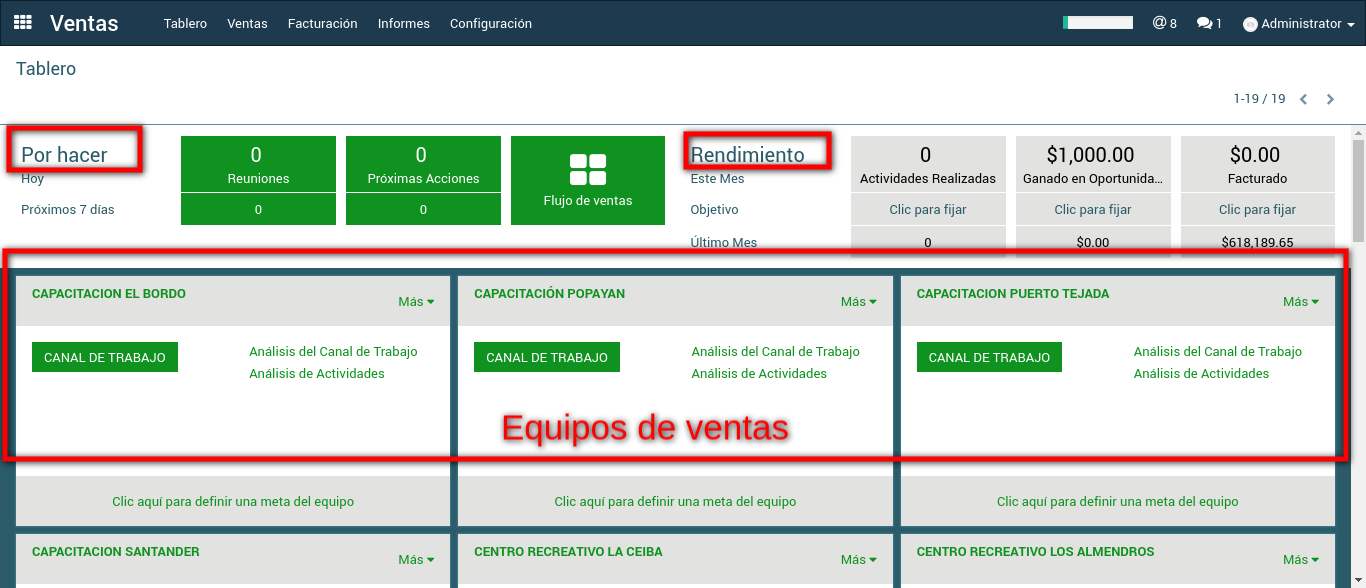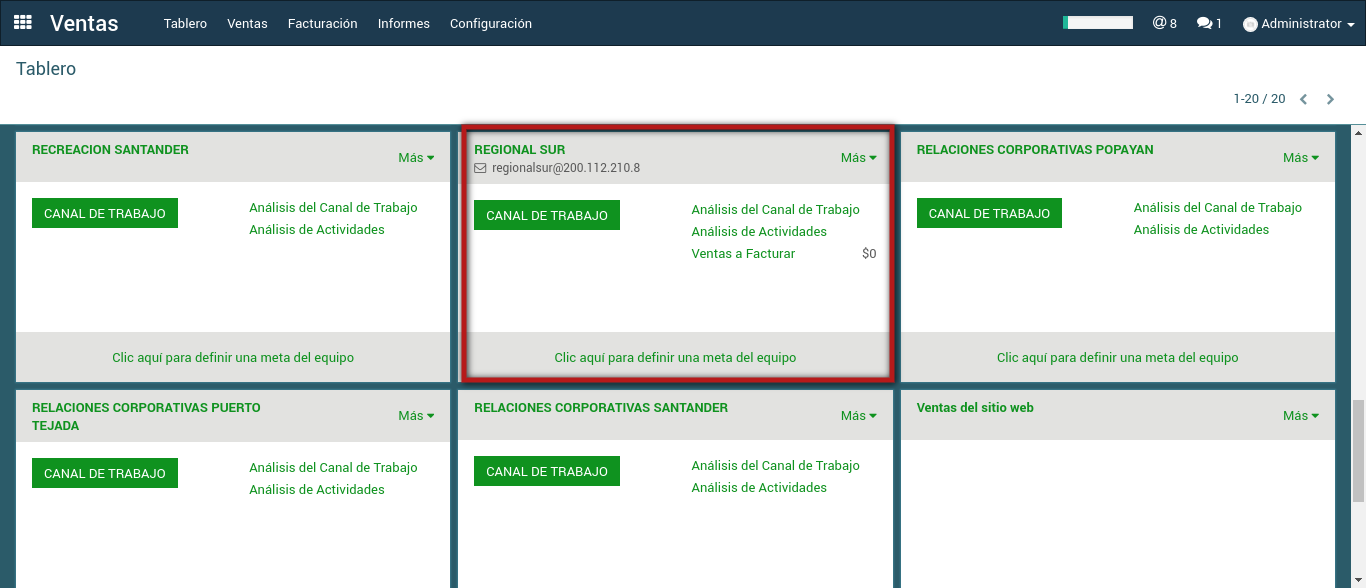 Si se regresa al tablero de control se encontrará el nuevo equipo de ventas que se creo.
