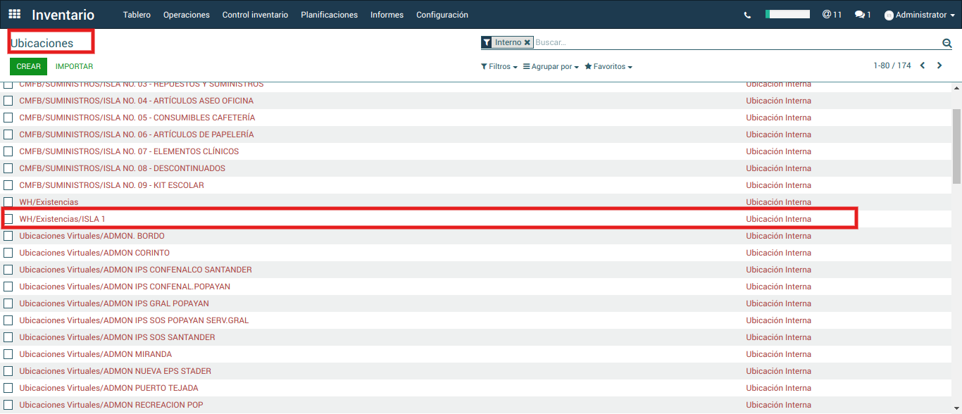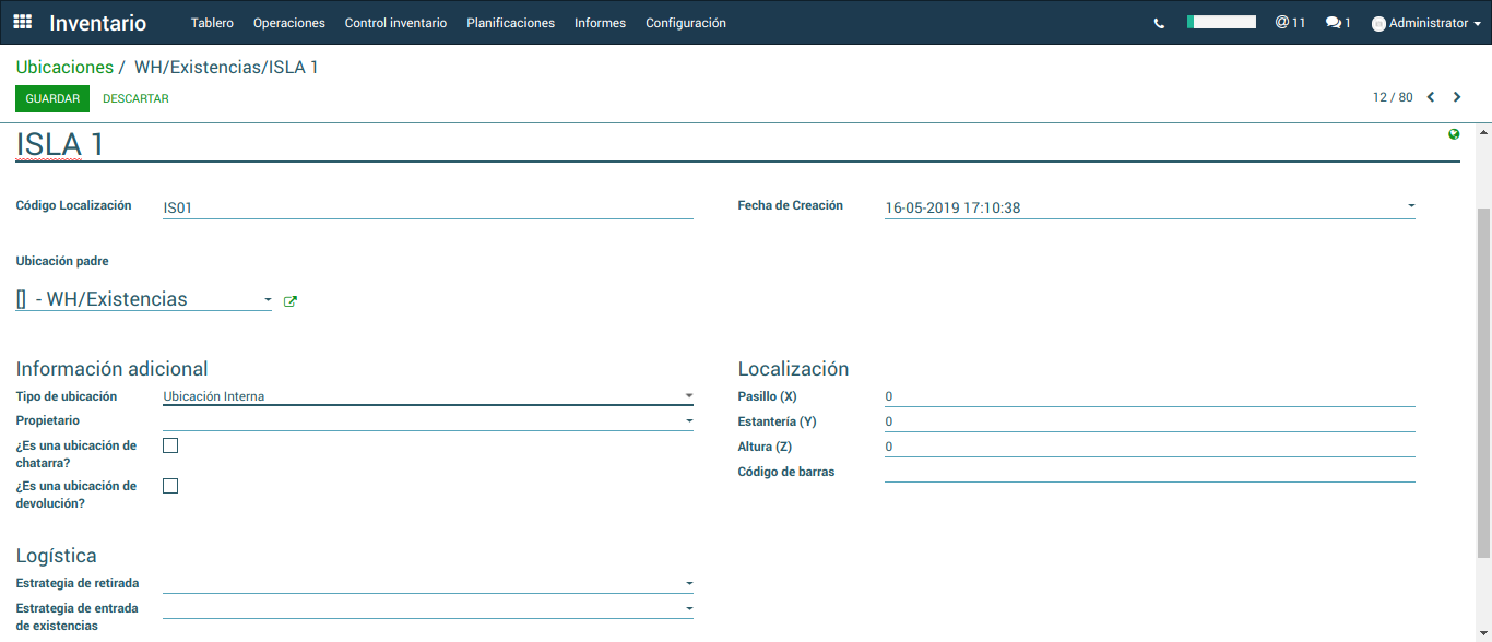 Ruta: Inventario > Configuración > Ubicaciones > Crear