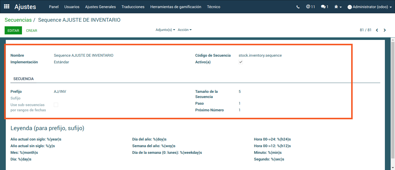 Configuración de la Secuencia de los Ajuste de Inventario.¶