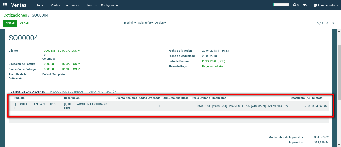 Luego de llevar a cabo esta configuración se crea la cotización.