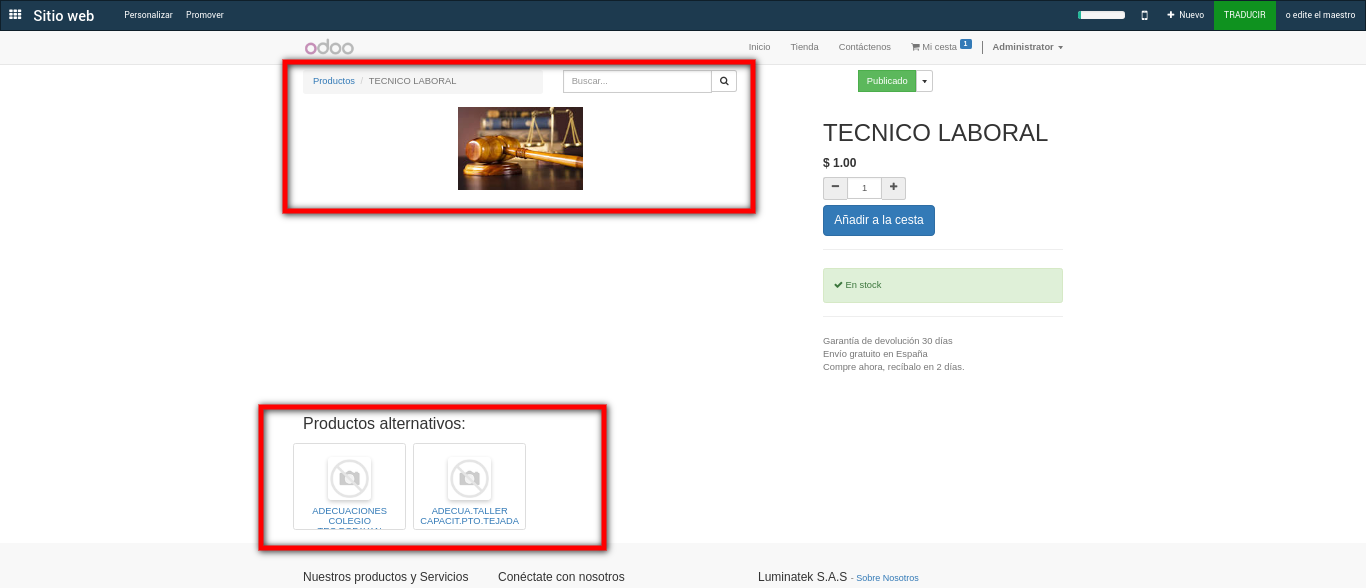 Se puede agregar productos sugeridos a un producto en específico, desde su propia plantilla, para realizar las ventas desde el sitio web.