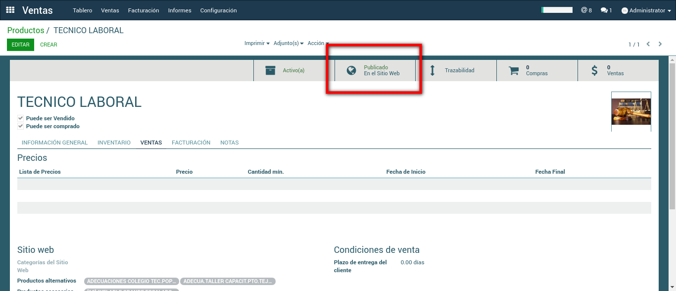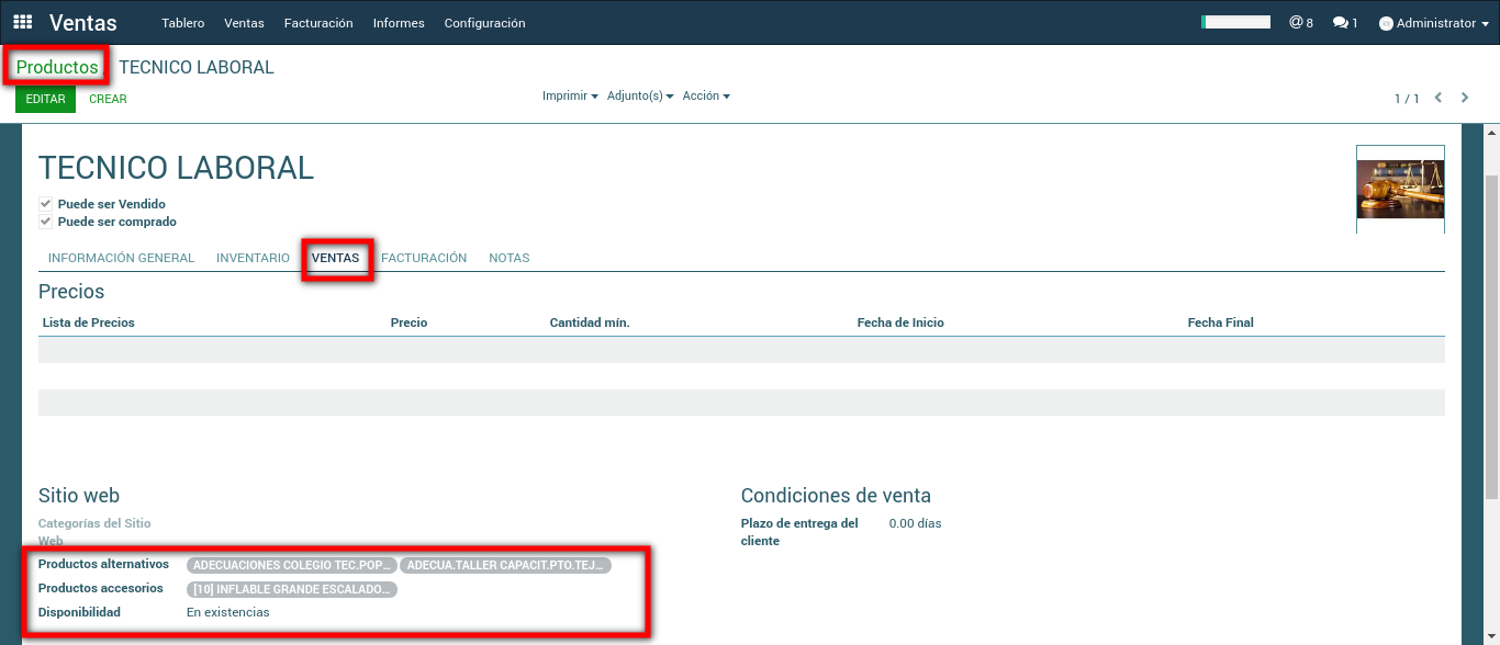 > Modulo Ventas > Ventas > Productos